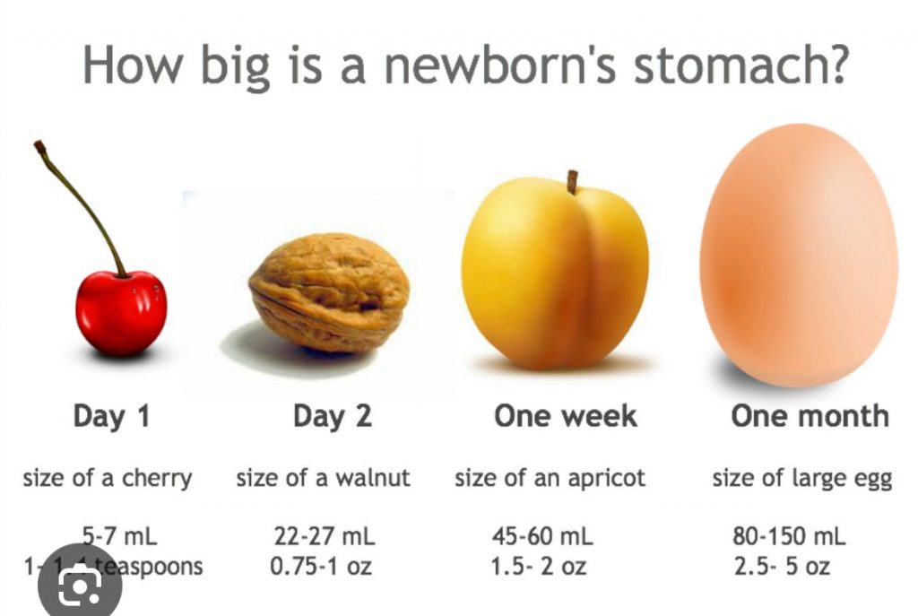 This small volume is by design. Your baby’s stomach at birth is about the size of a cherry and therefore they cannot take on even a tablespoon of liquid at any one time. Frequent feeding is vital to draw the colostrum through, keeping your baby’s tummy full and to encourage your milk to mature… all whilst soothing and regulating your baby. Moreover, your baby has received 24/7 nutrition from you in the womb, so they won’t be ‘starving’ within the first hour or two following the birth.